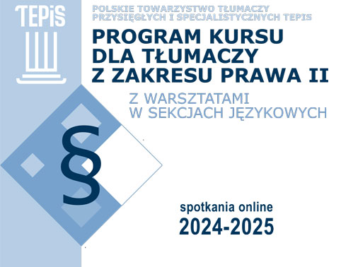 PROGRAM SZKOLENIA KURSU DLA TŁUMACZY Z ZAKRESU PRAWA Z WARSZTATAMI W 11 SEKCJACH JĘZYKOWYCH (2022 – 2023)