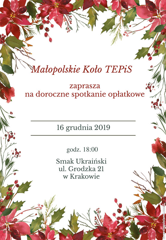 • W imieniu Małopolskiego Koła TEPiS serdecznie zapraszam kolegów i koleżanki  na coroczne spotkanie opłatkowe.