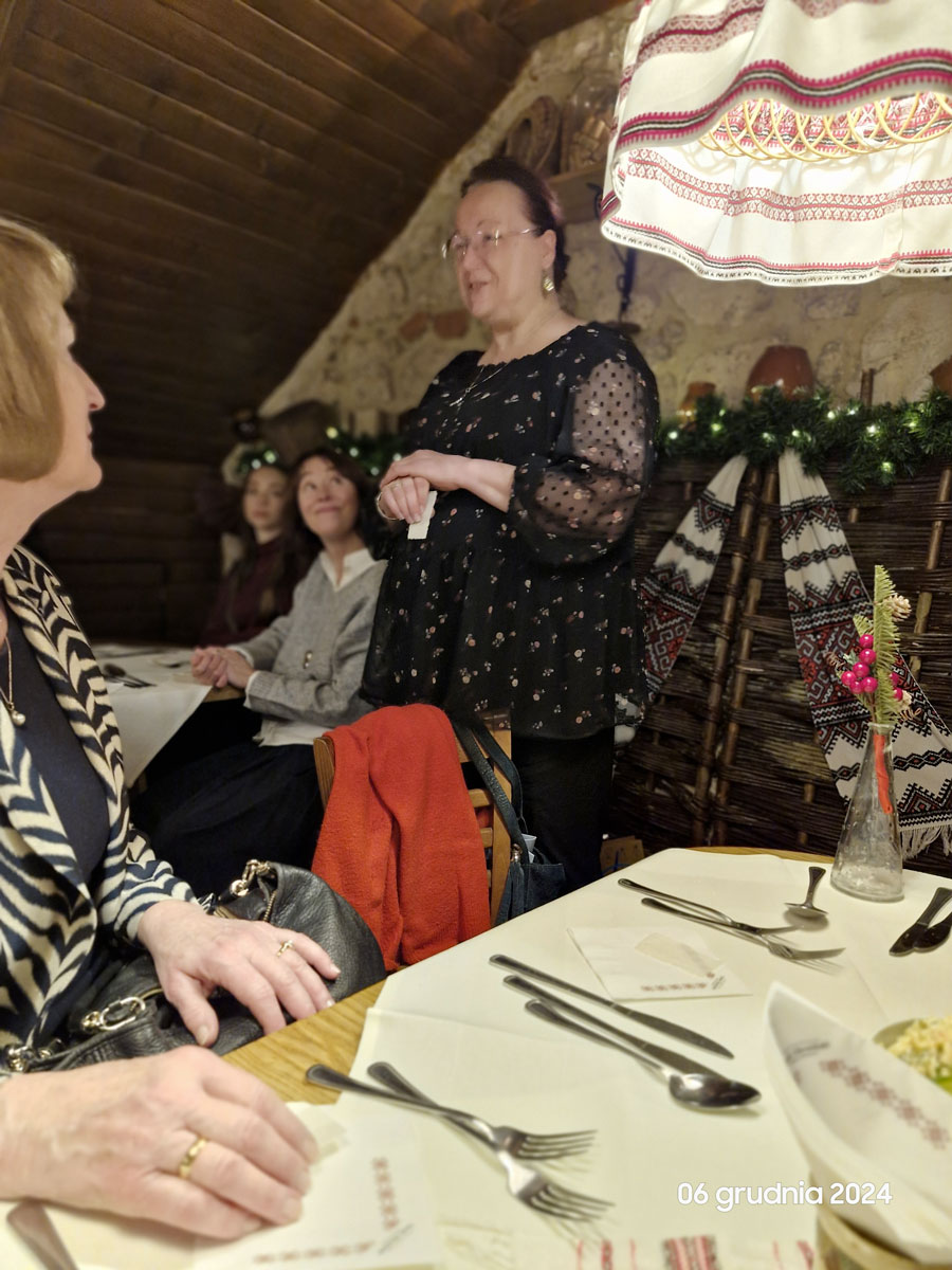 W piątek, 06 grudnia 2024 r., w restauracji Smak Ukraiński w Krakowie odbyło się tradycyjne opłatkowe spotkanie tłumaczy MK TEPIS. W spotkaniu uczestniczyła rekordowa liczba 28 osób, w tym Prezes PT TEPiS Marta Czyżewska, Wiceprezes PT TEPIS Krystyna Kołodziej, Sekretarz Generalny PT TEPIS Urszula Deja, członek Sądu Koleżeńskiego Witold Wójcik, członek Komisji Rewizyjnej Marcin Fijas, członkinie Rady Naczelnej: Katarzyna Szczygieł-Klara, Małgorzata Kulikowska i Aneta Mucha, a także Zarząd MK TEPIS w osobach: Monika Mostowy –Prezes MK TEPIS, Anna Labe i Małgorzata Lipska – Wiceprezeski MK TEPIS.