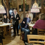 • Spotkanie opłatkowe odbyło się 12 XII 2016 r. w Restauracji Smak Ukraiński w Krakowie na ul. Grodzkiej Uczestniczył w nim Zarząd MKT oraz goście – tłumacze przysięgli z Krakowa i okolic. Niespodziankę sprawili nam pp. Kierzkowscy, którzy przy okazji wizyty w Krakowie również krótko uczestniczyli w naszym spotkaniu. Na liście obecności podpisy złożyło 11 osób – tłumacze języków: niemieckiego, angielskiego, rosyjskiego, francuskiego, niderlandzkiego i ukraińskiego. Rozmawialiśmy na temat planów MKT na 2017 r. w tym przede wszystkim – organizacji repetytorium w kwietniu, problemów z jakimi spotykamy się w naszej pracy, sytuacji naszej grupy zawodowej, itp. Zosia bardzo ciekawie mówiła o tradycjach bożonarodzeniowych i dawnych zwyczajach sięgających czasów pogańskich, a związanych z przesileniem zimowym.Wspólnie napisaliśmy również kartki z życzeniami bożonarodzeniowymi i noworocznymi dla nieobecnej ciałem, ale obecnej duchem Prezes MKT Marii Metzler oraz Prezes PT TEPIS Zofii Rybińskiej.opr. Urszula Deja, członek Zarządu Małopolskiego Koła TEPIS Galeria zdjęć ze spotkania