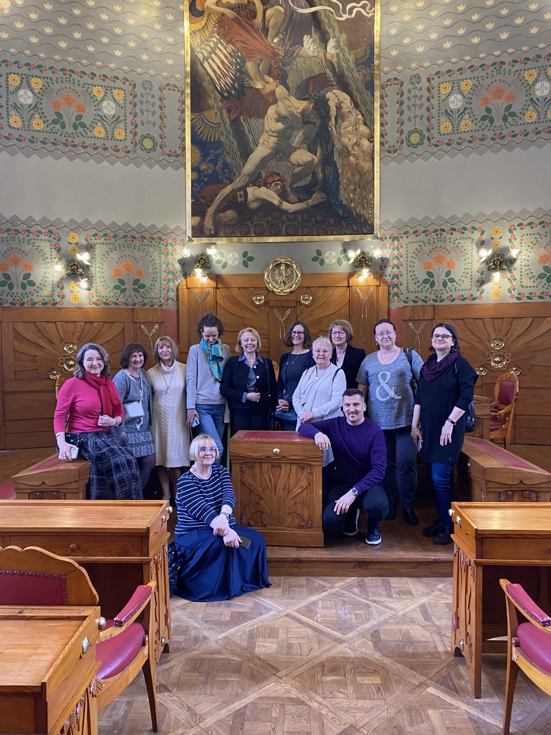 • Wspólne zwiedzanie „Domu pod Globusem” na rogu ulic Długiej i Basztowej w Krakowie w dniu 19 kwietnia 2024 r. Ta słynna krakowska kamienica jest na co dzień niedostępna dla zwiedzających. Dzięki inicjatywie p. Marty Czyżewskiej, Prezes PT Tepis, Wydawnictwo Literackie pokazało nam Dom pod Globusem ze słynną Salą Mehofferowską i wieżą zegarową.